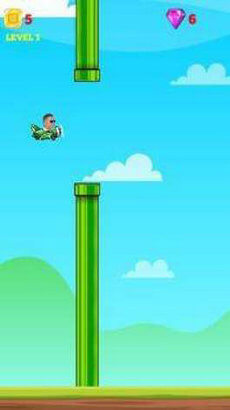 当用户遇到柱子或障碍物时,手游结束。在游戏里面有许多小道具可以帮助用户突破,