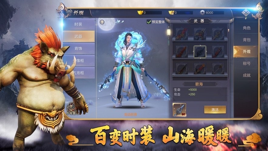 1、宏大的手游场景之中有着更加精致的造型与商城华彩的时装相得益彰;