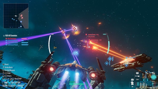 1、控制战机与机甲在无重力的环境下进行自由的战斗,感受王牌见的空中狗斗。