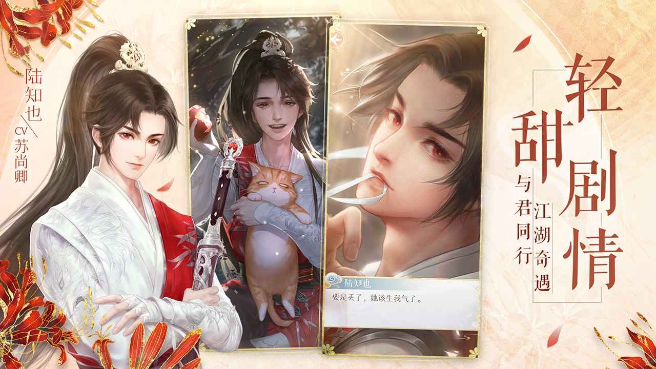 2.女主可盐可甜,男主颜值在线,故事走向轻悬疑,轻松搞笑不油腻。门派少主、奸佞王侯、宫廷乐师、巨贾东家、深谷谪仙伴你同游江湖。