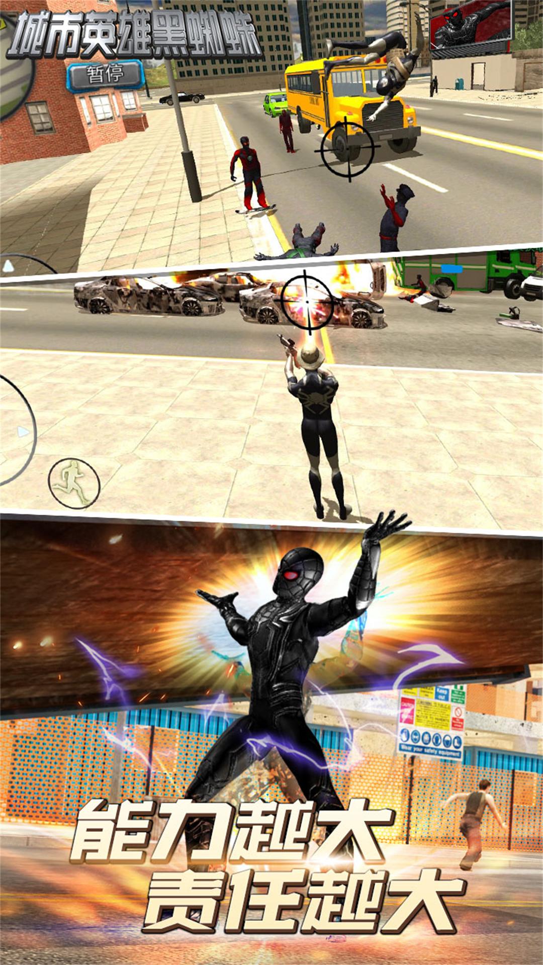 城市英雄黑蜘蛛手游作为一个非常好玩的休闲闯关类型的手游,手游的玩法非常的丰富,游戏中用户在游戏中扮演的是一位守护城市的英雄,你想要控制自己的角色在城市之中去进行探索,搜寻更多的敌人,将其击败,手游的场景非常的丰富,游戏中用户还有各种酷炫的技能,通过不断的练习,这样就可以让自己掌握更多的技巧,一起来试一试吧!感兴趣的小伙伴赶紧来超能街机下载吧!