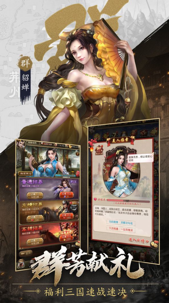 3、完美的武将养成体系,猛男靓女尽数展现,更有妖姬陪伴您征战四方。