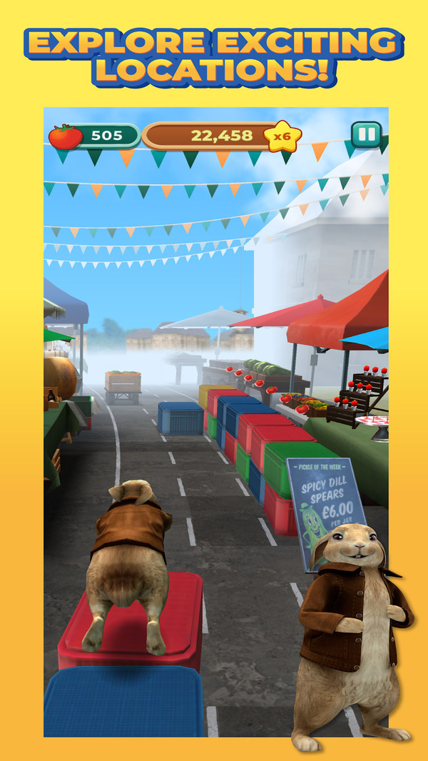 2、比得兔跑酷在游戏里面需要展示你的跑酷技能,并不断继续冒险。