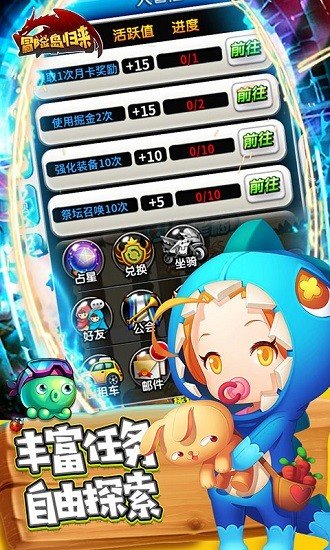 冒险岛归来作为一款呆萌治愈系冒险游戏,最大特色是华丽的3D画面,海量个性时装随意装扮,炫酷华丽的特效技能欲罢不能。手游核心的特点是充满刺激的冒险,酣畅淋漓的战斗,在游戏里玩家可以通过各种任务搜集极品道具,参与军团与用户并肩挑战终极BOSS,更多超多的地下城玩法等你尝试。