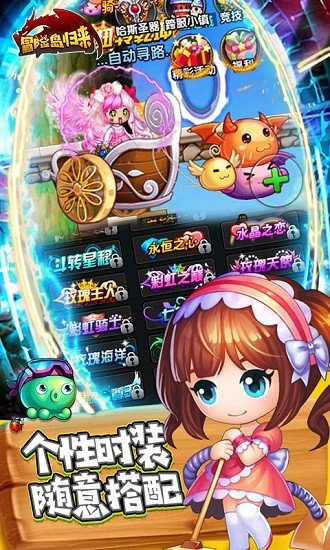 冒险岛归来根据经典的冒险岛手游进行了改编全新冒险现在出发,不知道你钟爱哪一个呢,让你不花钱享受尊贵身份,在游戏里面有很多的玩法等着大家,还有更多什么副本等你来尝试。