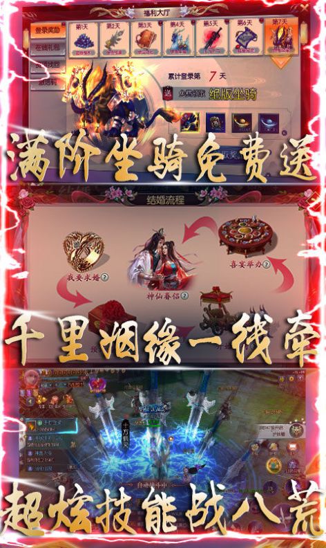1、新手用户登陆可以领取更多的福利,不管是神兽坐骑还是武器装备。