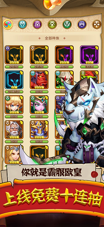 2、新手用户上线就可以获得十连抽,这样就可以获得更多英雄;