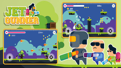 喷气机枪是一款卡通风格的休闲射击闯关手游。清新简单的卡通画风设计给用户们带来前所未有的冒险乐趣,丰富新颖的手游关卡,各种多样的武器种类,手游玩法也是非常的简单,闯关玩法,上下跳跃躲避敌人的攻击,点击攻击键射击敌人,手游里用户还可以收集金币用于升级装备或者购买道具。有喜欢的用户快来玩吧!