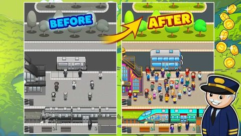 放置客运列车作为一款卡通风格的列车车站养成游戏,在游戏里面,在游戏里玩家可以一点一点开辟新的路线,满足每一个乘客的出行需求,得到客人的好评,收获更多的资源!在放置客运列车IdleTrains中用户能够开通不同地方的路线,并且不断升级自己的客运列车站。