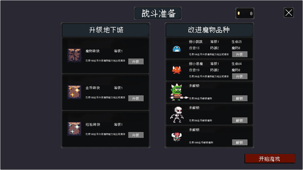 勇者将与任何阻挡他的魔物战斗。手游的目标是使用魔物杀死每一个入侵地牢的勇者。