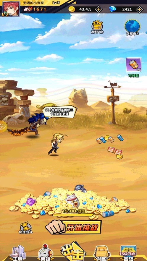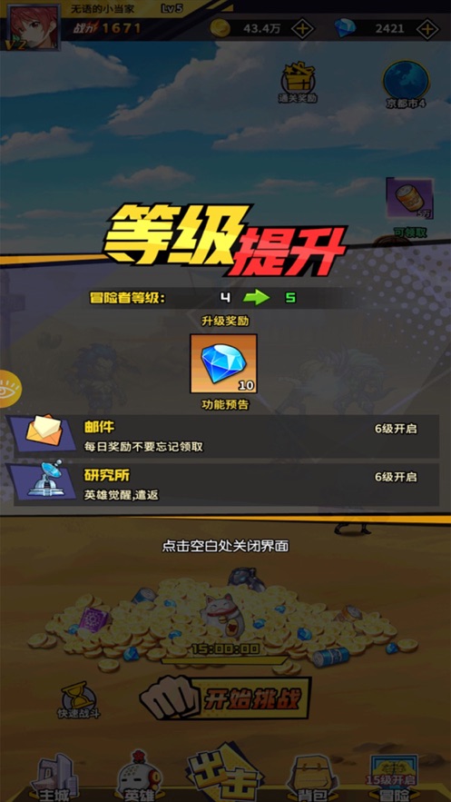 3、完成不同层次的对战,才可以创造出无限的辉煌;