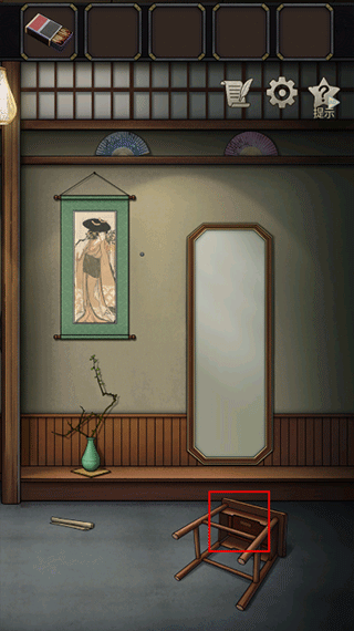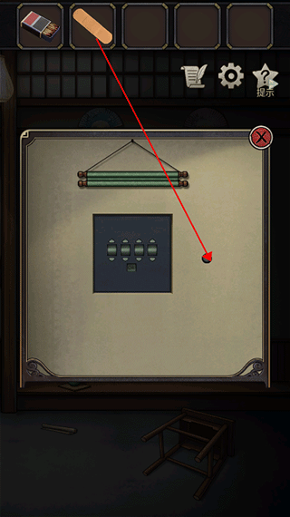 2、返回主场景后向右切换画面,在地上板凳的底部能够找到一件物品——创可贴。