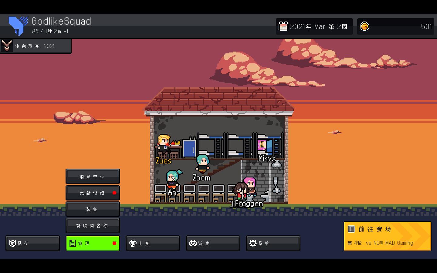 TeamfightManager作为一款像素卡通风格的电竞模拟养成类型的手游,在游戏里面用户将会扮演一名已经退役的传奇电竞选手,自己招募队员,从最低级的网吧联赛开始,打上次级联赛,最终站在世界赛的舞台上,根据队员的不同属性来调整场上位置和BP顺序,只有精心策划才能让队员击败各种强队,喜欢的小伙伴赶紧来下载吧。