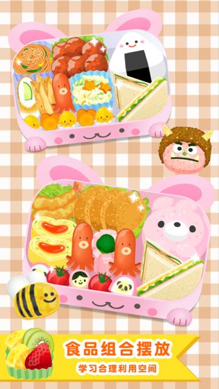 便当小能手作为一款专为儿童设计的寓教于乐的手机手游,手游能够很好的锻炼小朋友的动手能力,让你的宝宝从小就会自己做便当,这里有超多的食材可以选择,各种便当搭配让午餐更加丰盛,还可以保存在相册中记录哦,喜欢的小伙伴们快来下载尝试吧!