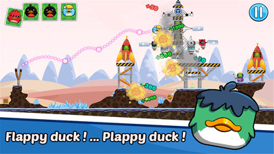 3、在哪儿都可以玩,手指轻松一点,咻的一声鸭子们就升空咯!