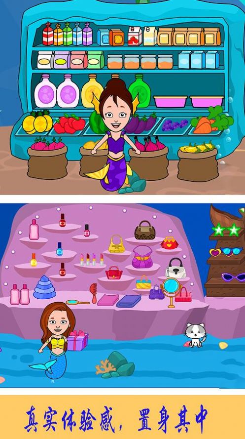 1、逼真的角色扮演情景,化身美人鱼后你要参与角色的各种活动,打理家务还有应酬;