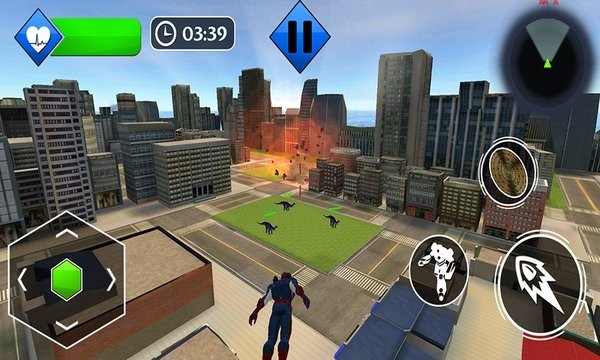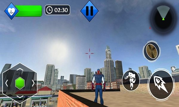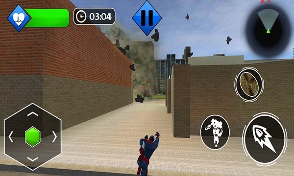 3、角色左手拿着一个圆形盾牌,右手可以用拳头和腿来攻击城市的敌人。