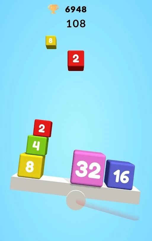 3、新鲜的2048合成玩法,增加了平衡难度,保持天平的平衡需要技巧,找出合并规律和操作技巧。