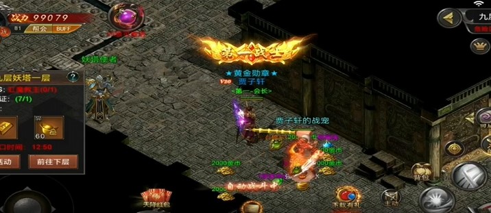 2、通过跨服争霸赛、跨服行会战得到特色玩法,激战boss来获得各种神兵神装,通过pk来获得各种装备和材料,不断强化你的实力。