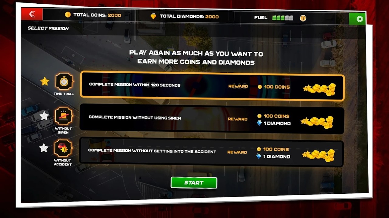 2、你必须在有限的时间内到达事故点,您可以选择使用警报器,以便其他车辆远离您;
