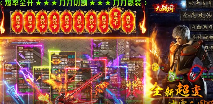 2、充值比例1:1000,首充送切割神兵、三国神将:曹操、终极技能