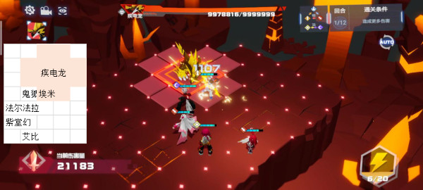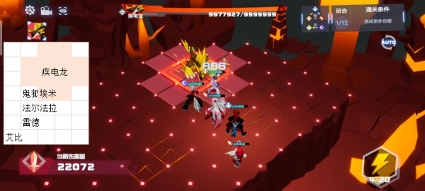 总体思路是让仇恨值高的在3,5回合尽量右移诱导疾电龙去墙角,开局刷一个右走2格的最优,然后队伍整体右移,基本可以在第三回合末就完成了对疾电龙的走位诱导。