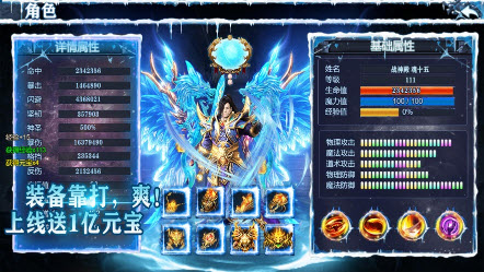 2.用户上线时可以获得大量元宝,并收集角色需要配置的装备和武器。