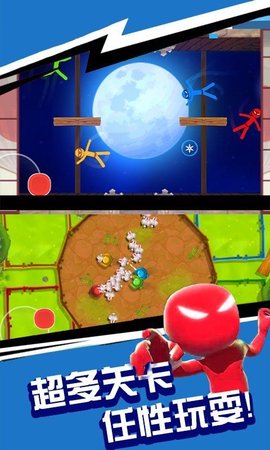 1、火柴人一挑三有着精彩刺激的战斗画面,不同的关卡有着不同的战斗尝试;