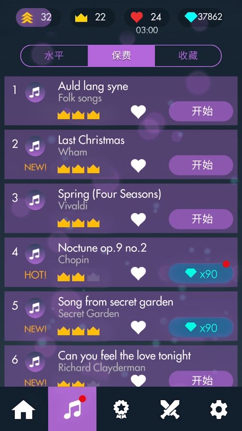 • 歌曲经常更新,从古典歌曲(如贝多芬,肖邦,莫扎特,舒伯特,柴可夫斯基)到最受欢迎的歌曲。