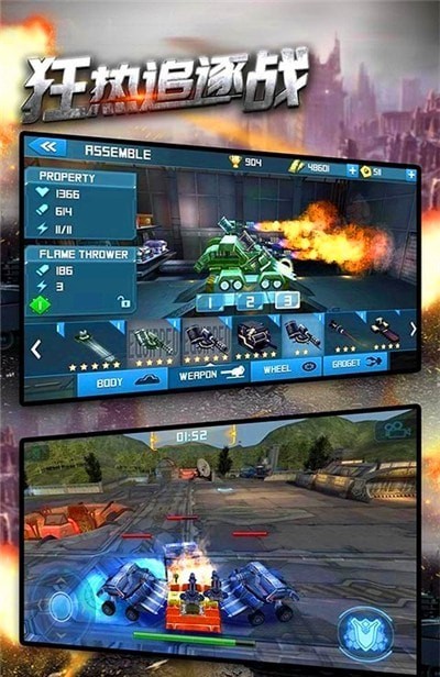 2.紧张刺激的战车角逐,为你的战车装备上强大的武器和装甲,成为不可打败的钢铁巨兽;