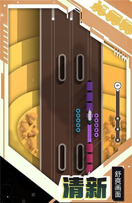 小心火车出轨作为一款趣味性十足的闯关小游戏,手游里面有着很多不一样的铁轨,蜿蜒曲折,手游用户必须点一下显示屏来指引列车分开行车,让列车能够安全性的抵达终点站来进行挑战,也要当心观查每一辆列车的剩余油。