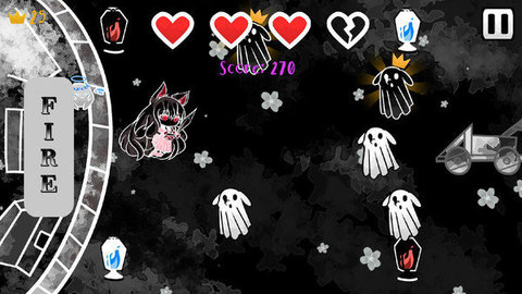 粉碎幽灵作为一款超级好玩的休闲闯关类手机手游,卡通风格,黑白画质,丰富场景,简单操作,在游戏里面通过控制可爱的小女巫,去击碎屏幕出现的鬼魂,购买装备道具强化自己,在最后出现守卫boss,在游戏里玩家需要操作技术去打败守卫boss完成闯关,