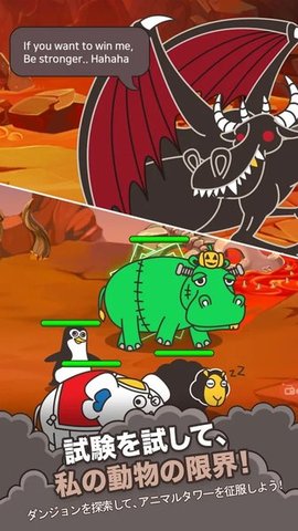你的动物(Your animal)游戏作为一款以小动物为主角的格斗手游,在游戏里玩家在手游一共有两个阵营,小动物们是一方阵营,怪兽们是一方阵营。而你想要操控小动物们来打败怪兽,这样才能逃离这个地下城。对该游戏感兴趣的话就快点来下载尝试吧!