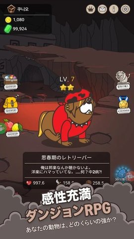 1、通过探索地牢获得黄金,强化动物!