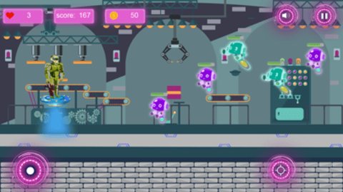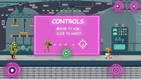 1.触摸机器人并设定正确的目标,然后开始射击、收集金币和升级新武器;