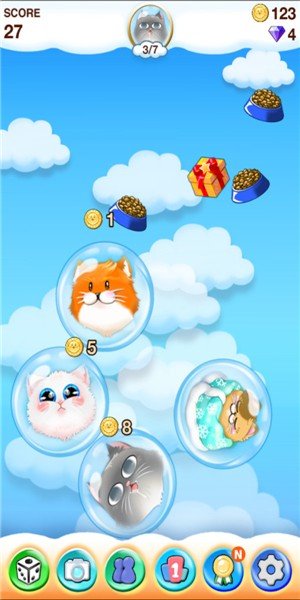 新鲜的猫宠物收集系统可以保存可爱的猫咪伙伴,并选择不同的猫来玩泡泡。