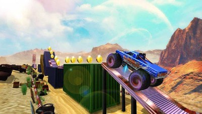 怪物卡车特技表演作为一款超级好玩的赛车手游增加自己的熟练程度,收集金币可以升级你的赛车,在游戏里玩家在里面操作一辆越野车进行手游,不要再犹豫啦。