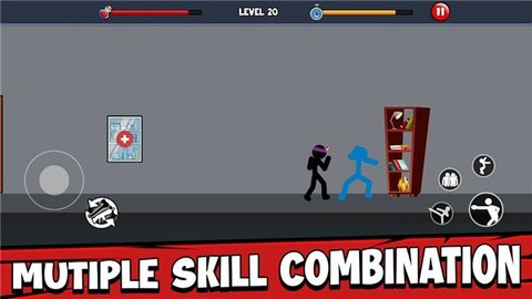 2、用不同的武器去挑战其他的火柴人,技能也可以自由的组合,打击感非常的给力。