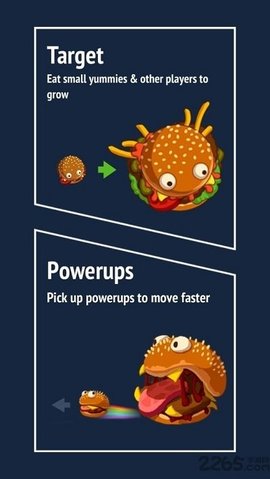 款手游采用吞噬的手游玩法,全齐用户需要通过吞噬较小的食物来为汉堡加量,让这是一个“快速反应”的手游,所以如果你是速度手游的粉丝 - 和我们一起玩吧!汉堡变得更为壮大,提升阶级,还能吞噬你的对手,让自己获得更高的分数。任何人都可以玩 - 它简单而令人兴奋!您的移动设备无尽的乐趣。