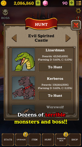 1、不断战胜各种各样的怪物,获得奖励