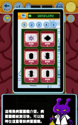 您可以在游戏里面收集各种不同的细菌。卡通细菌很有趣,可以慢慢尝试各种不同的内容。