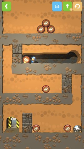 该游戏有很独特的玩法,在游戏里玩家需要帮助矿工成功逃脱,在游戏里面的操作也很简单,手指轻松点击屏幕,手游角色就可以开始挖洞来寻找出口,非常的简单,容易上手,这作为一款轻松愉快的小游戏。