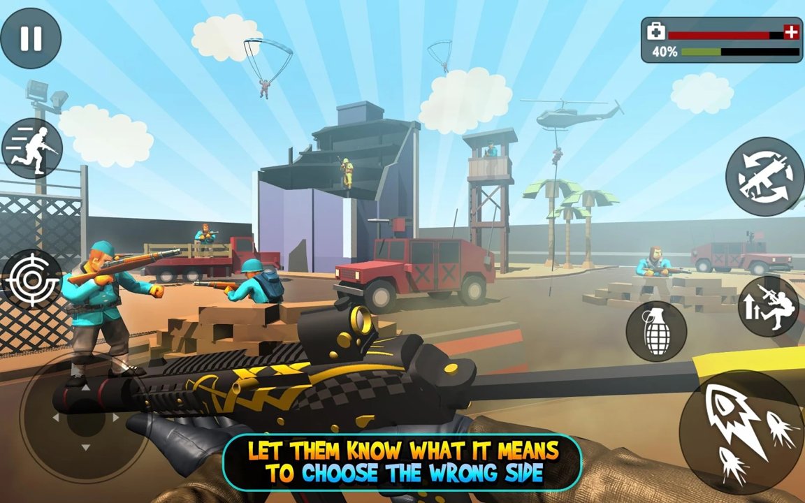 Toon Royale专为移动而设计,作为一款适合所有人享受的休闲枪战手游。离线开始玩小香椿战死亡手游。命令你的突击队波拿巴小队,在未知的舞台上勇敢地战斗!走进战场。瞄准好并射击他们!