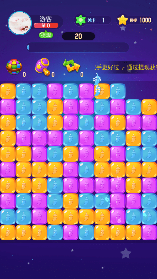 辣椒消消乐下载是能提现的消消乐手游,闯关拿红包,赚更多现金收益。手游关卡丰富,场景多样,多种道具轻松获取,特效绚丽,让手游更尽兴。辣椒消消乐上线就能领红包,每天打开玩一玩,发现隐藏在关卡中的红包,完成关卡就能将奖励红包直接到你的微信钱包,没有任何门槛,不需要绑定账号信息,一秒到账。