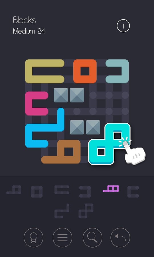 一个典型的块益智手游以新的方式进行解释。拖动并在棋盘下降块,并覆盖所有的点。块不能重叠,仅被放置在它们装配到路径。