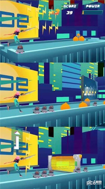 你想要同时在3个平行宇宙中控制Meta的变化。你将沿着一个未来主义的赛博朋克城市的屋顶奔跑,在所有现实中面对不同的障碍。我们的目标是尽可能多地活下去,活得越久越好。当你跳跃或攻击时,你在每一个3个现实中都是这样做的,所以主要的困难是在每一个3个不同的平台上留意危险。