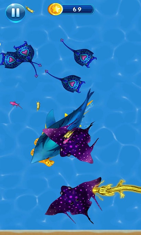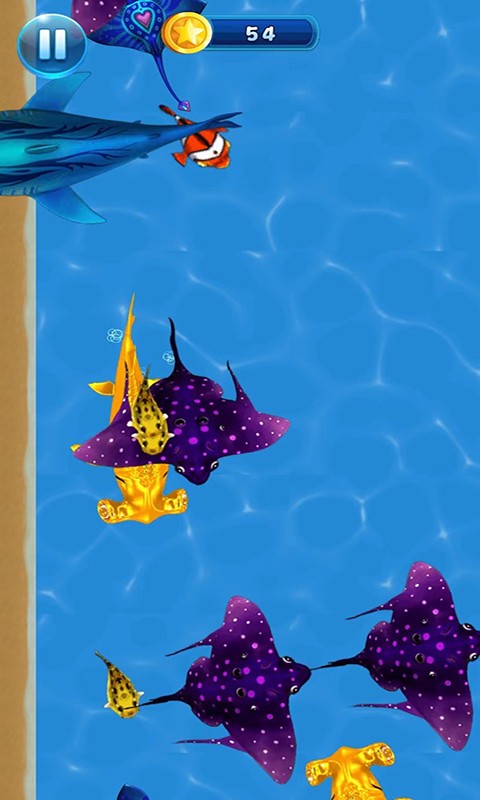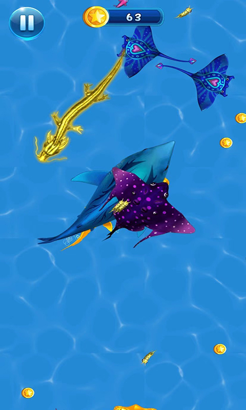 3、或者你对自己的反应能力十分自信,可以在各种生物之间自由穿梭,小心鲨鱼一个摆尾,你又会变成无助的小鱼苗。