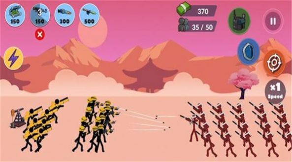 1、经典的火柴人战争开启,蛮多的兵种组合搭配,参与战斗之中;