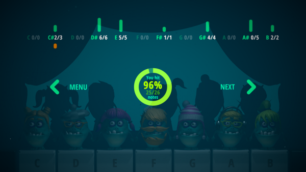 钢琴怪兽团是一个有趣的语音控制类型的手游,钢琴怪兽团手游中目前有12个怪物的造型可供用户选择,只要用户音乐演奏的不正确怪物就会吃糖果,任务完成后糖果会变成对应数量的金币。