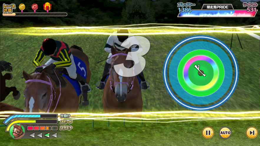 比赛过程会有马跑步比赛的画面,感觉紧张刺激,仿佛真的像自己带着训练有素的马上场